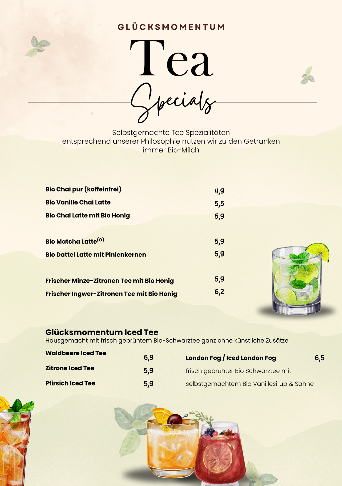 Im Familiencafé Glücksmomentum legen wir besonderen Wert auf eine bewusste und nachhaltige Ernährung. Unser Café-Menü ist mit Liebe zusammengestellt und bietet eine Vielzahl an hausgemachten Kuchen, gesunden Snacks und erfrischenden Getränken, die sowohl Eltern als auch Kindern schmecken. Wir verwenden ausschließlich Bio-Zutaten, die nicht nur dem Wohl Ihrer Familie, sondern auch der Umwelt zugutekommen. Genießen Sie hochwertige Speisen und Getränke, die den Moment zu einem echten Glücksmoment machen.